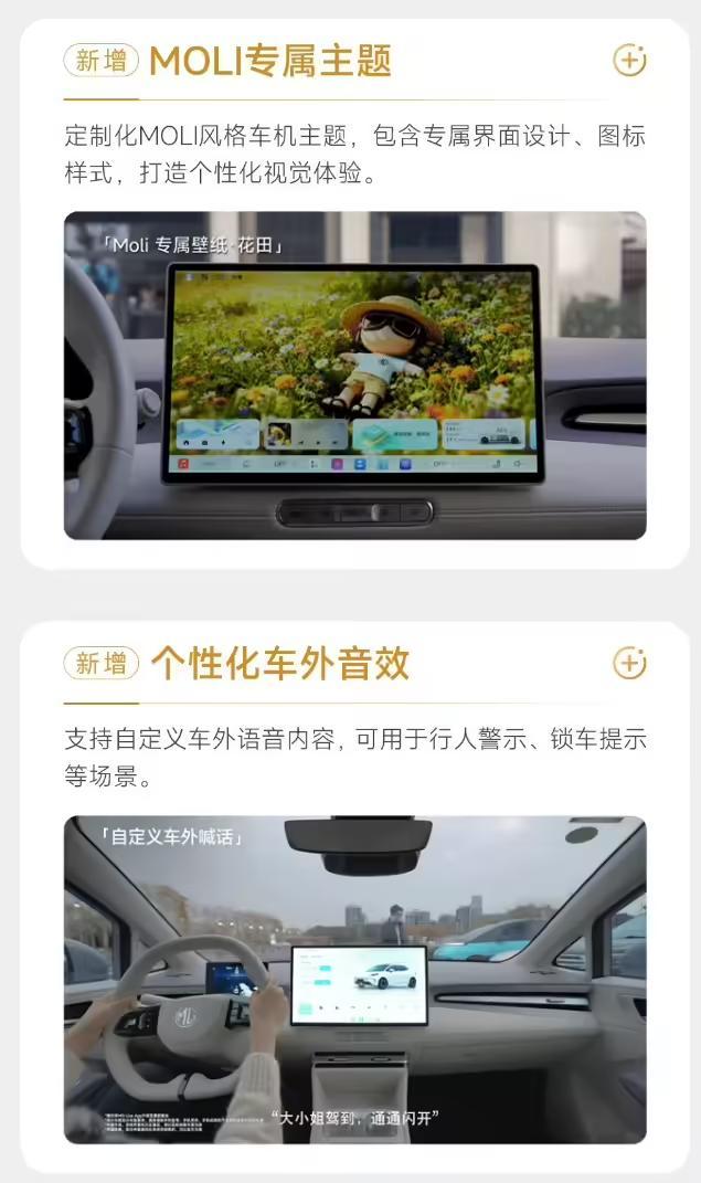 在日常使用最频繁的车机显示方面,本轮升级也加入了更具情感化的表达。新上线的 MOLI 风格车机主题,提供专属的开机动画、界面设计和导航图标。除了上述功能,此次 OTA 还对多项基础体验进行了优化,包含导航新增熟路模式、通勤预测以及终点附近的充电、停车推荐,仪表盘新增行驶总里程显示和超速预警,提升出行的便捷性与安全性;540° 全景影像的显示效果也得到优化,实现全屏化、无黑边,帮助用户无死角查看周边路况;新增的安全护航模式能联动补盲功能打开全局视野,增强低能见度下的行车安全。