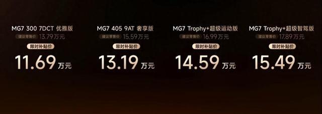 IT之家 1 月 6 日消息,上汽集团旗下名爵品牌 2026 款 MG7 已上市,此次年度改款车型共推出 4 款车型,官方指导价区间为 13.79-17.89 万元,限时补贴价区间为 11.69-15.49 万元。除此之外用户还可享受限量升级 5000 元装备、至高 8000 元置换补贴和价值 10000 元双保权益等。
