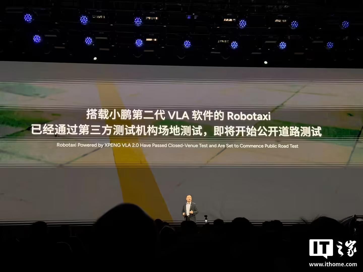 IT之家从发布会现场获悉,搭载小鹏第二代 VLA 软件的 Robotaxi 已经通过第三方测试机构场地测试,即将开始公开道路测试。