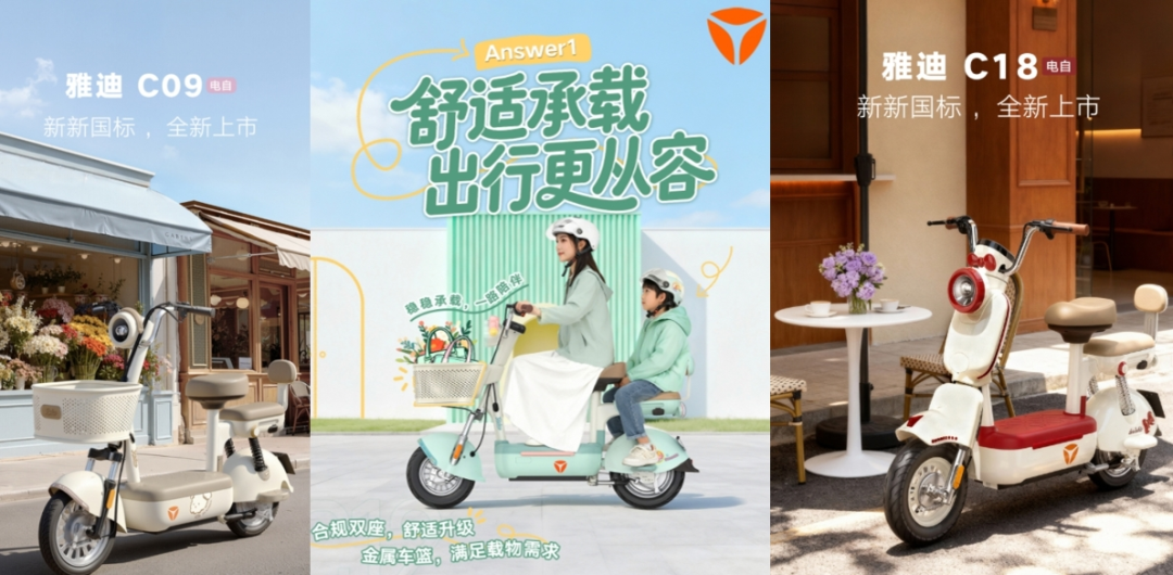 借“新国标”契机,雅迪等头部厂商靠强产品力+数智化生产力+新型服务理念加强核心竞争力、研发出更多新品,用户的选择更加丰富、提升长期体验,市场持续壮大,实现多赢。