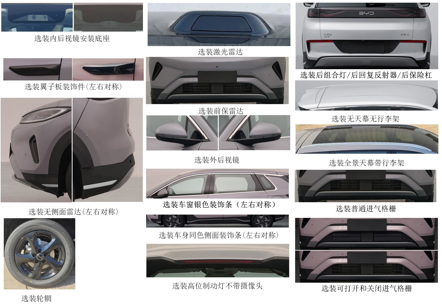 配置方面,新款比亚迪海狮 05DM 提供了丰富的选装项目,包括内后视镜安装底座、翼子板装饰件、激光雷达、前保雷达、外后视镜、车窗银色装饰条、车身同色侧面装饰条、全景天幕带行李架等,同时还提供黑色五辐轮辋供消费者选择,满足不同用户的个性化需求。
