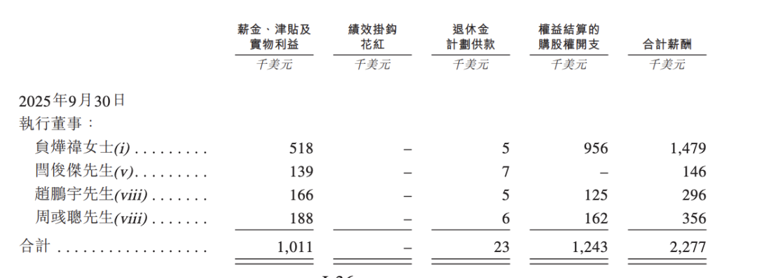 截止2025年9月30日,贠烨祎所拿到的合计薪酬为147.9万美元(合计人民币1100万元左右)——