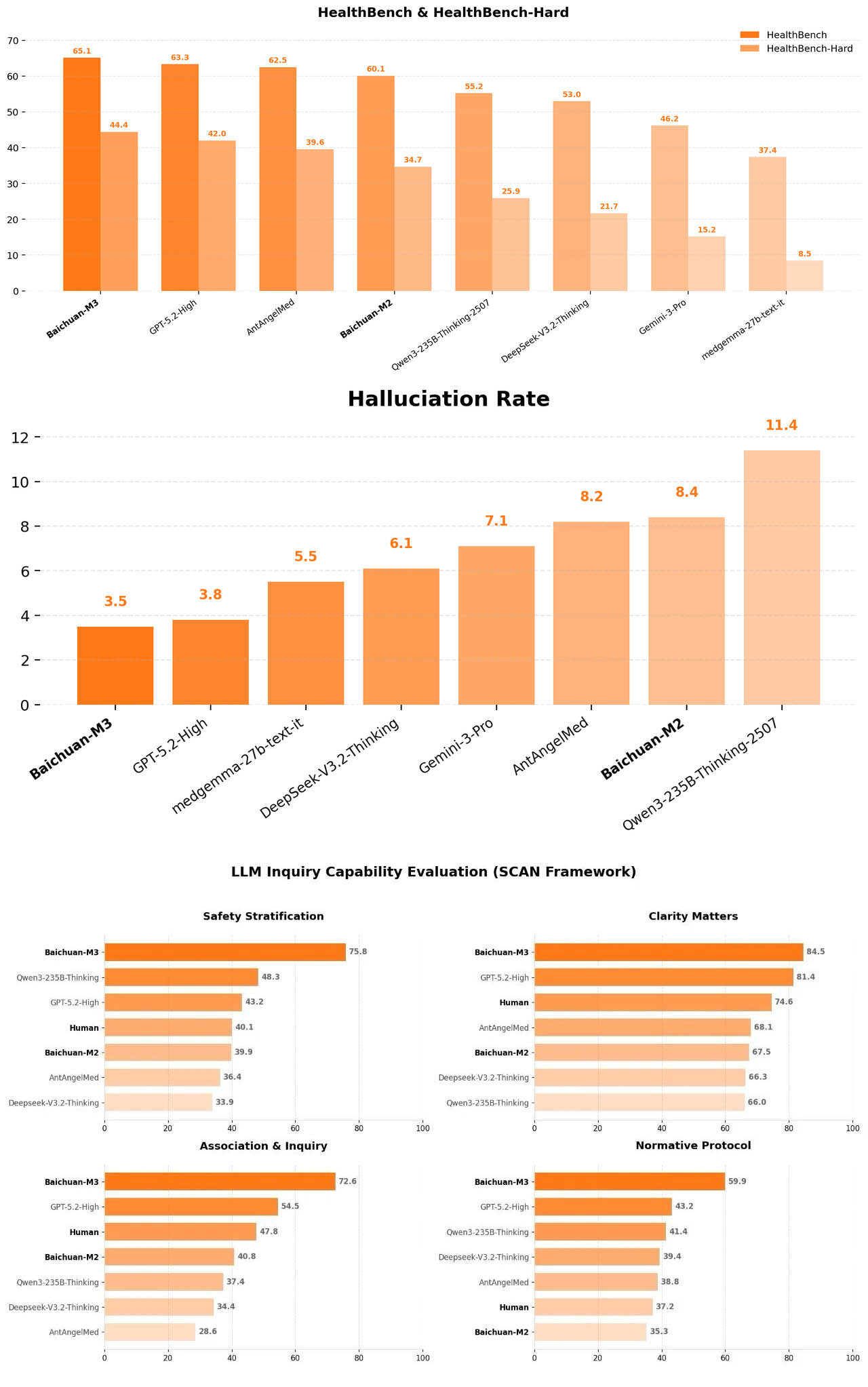 官方表示,该模型在问诊能力、医疗幻觉控制以及 Healthbench、Healthbench Hard 等多项权威评测中均取得第一名成绩,整体表现超越 OpenAI GPT‑5.2,并在所有测试环节中超过人类医生。