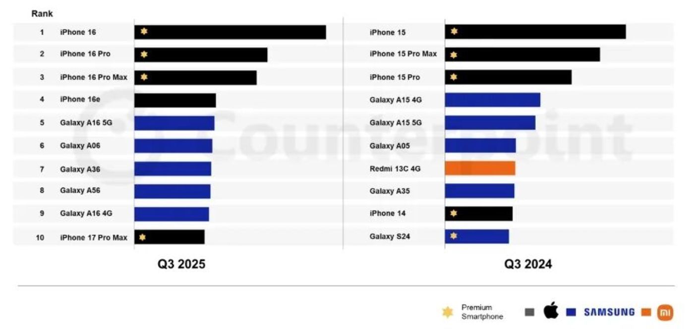 三星的企稳也有着相似的原因。2025年一季度,三星产品平均售价同比下降7%,二季度则推出了A系列高性价比产品。