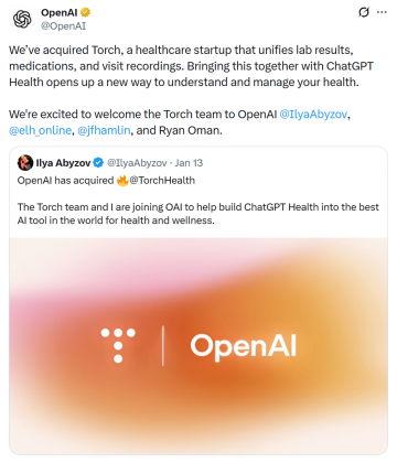 就在宣布收购 Torch 前几天,OpenAI 刚推出了面向普通用户的 ChatGPT Health 功能。