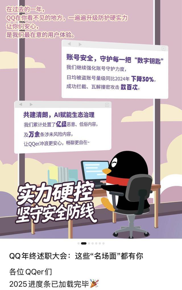 根据腾讯 QQ 发布的 2025 年度报告显示,通过持续升级安全体系,平台安全治理成效显著:2025 年,QQ 日均被盗号量较 2024 年下降约 30%;全年成功抵御黑产撞库攻击数百次; 2024 年账号找回成功率同比提升 17%,数千万 QQ 用户成功找回了早年丢失的账号。