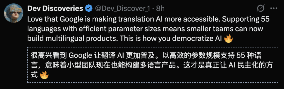 这对开发者来说无疑是巨大利好:只需不到一半的参数量,就能实现高度保真(high-fidelity)的翻译质量。