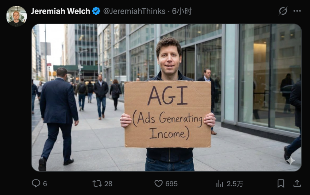 甚至还有网友调侃,AGI的意思就是Ads Generating Income。