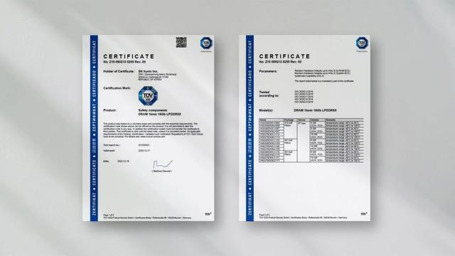 IT之家 1 月 19 日消息,SK 海力士今日宣布其车用 LPDDR5X DRAM 内存产品获得了 TÜV SÜD(TÜV 南德意志)颁发的 ISO 26262 汽车安全性最高等级 ASIL-D 认证。