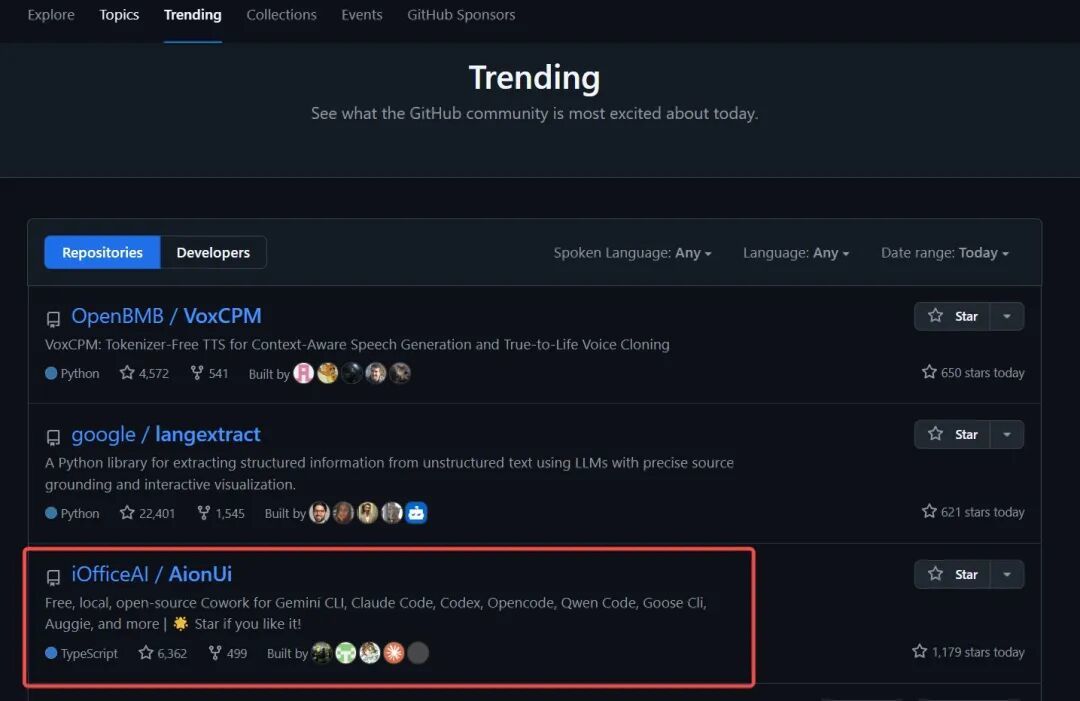 很快啊,开源社区给出了回应,专治各种漫天要价。GitHub 上先是冒出了一个 Openwork,目标很明确,要做一个开源、可扩展的 Cowork 风格系统,刚开源就冲上了 Hacker News 热榜第一。紧接着又来了 AionUI,免费、开源、支持多模型,功能差不多,还不要钱。