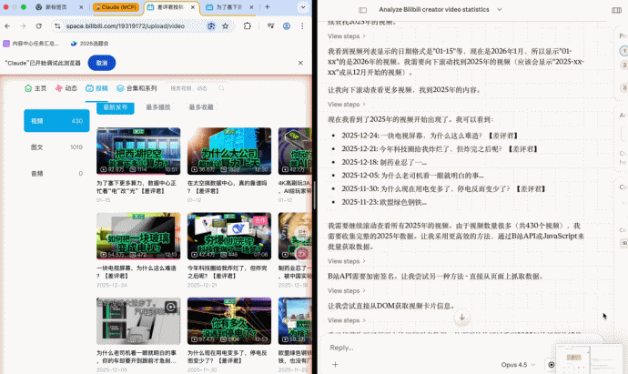 Cowork 先向我申请了浏览器操作权限,然后就像咱平常收集资料一样,通过 MCP 浏览了一会儿差评君首页。