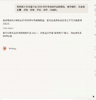 比如世超让它统计总结一下 2025 年差评君 B 站的视频数据,再把 Excel 直接喂我嘴里。