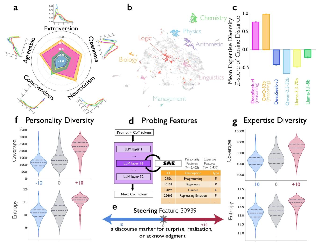 谷歌最新研究表明,DeepSeek-R1这类顶尖推理模型在解题时,内部会自发“分裂”出不同性格的虚拟人格,比如外向的、严谨的、多疑的……