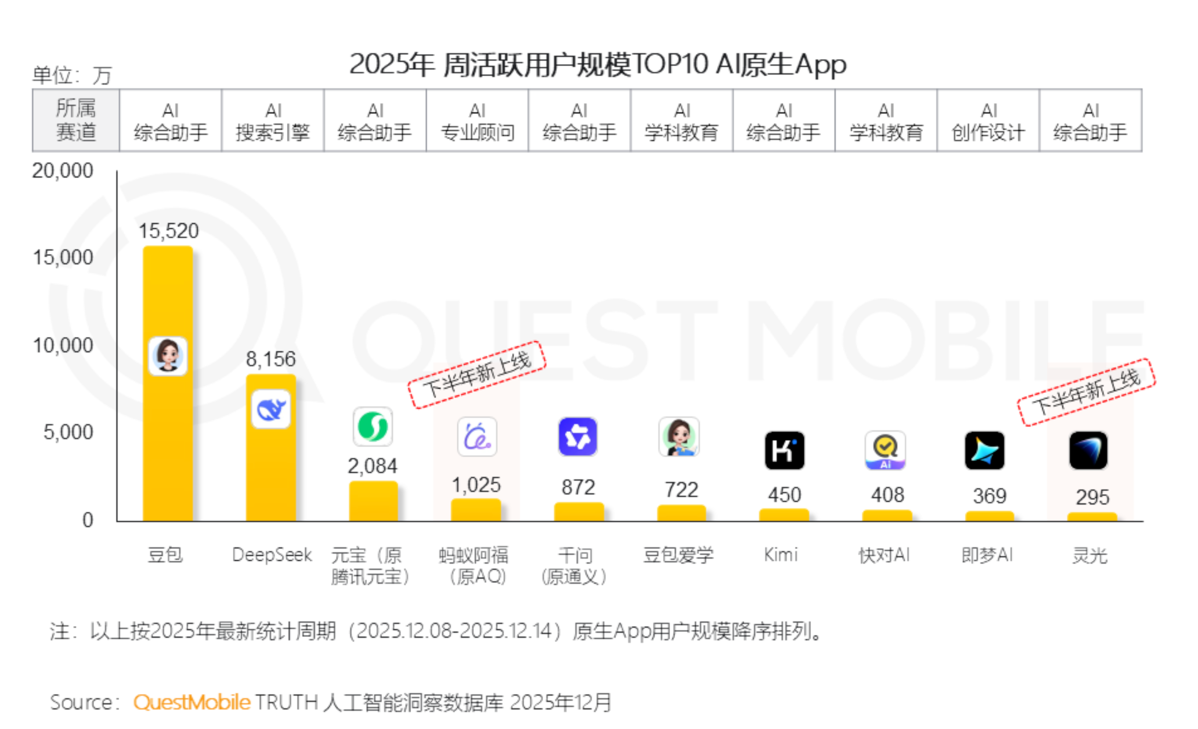 ▲ 更何况,根据 QuestMobile 的报告,DeepSeek 的影响力完全没有「掉队」