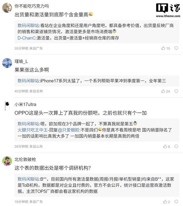 值得注意的是,OPPO 目前激活量中包含了 realme 真我的数据,博主表示“欧加现在 3 个品牌一起了,不算真我就是第五”。