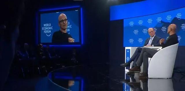 在2026年的世界经济论坛上,微软 CEO 萨提亚·纳德拉(Satya Nadella)与贝莱德 CEO 拉里·芬克(Larry Fink)进行了一场对话。
