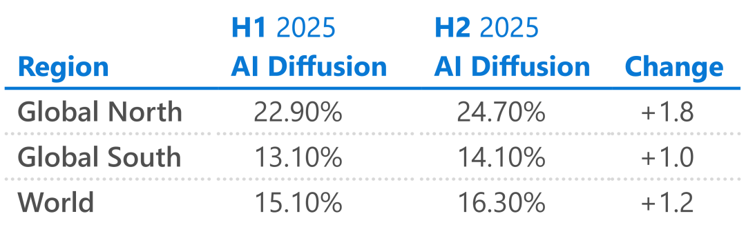 全球南方地区 AI 普及的程度还有很大的提升空间|https://www.microsoft.com/en-us/corporate-responsibility/topics/ai-economy-institute/reports/global-ai-adoption-2025/
