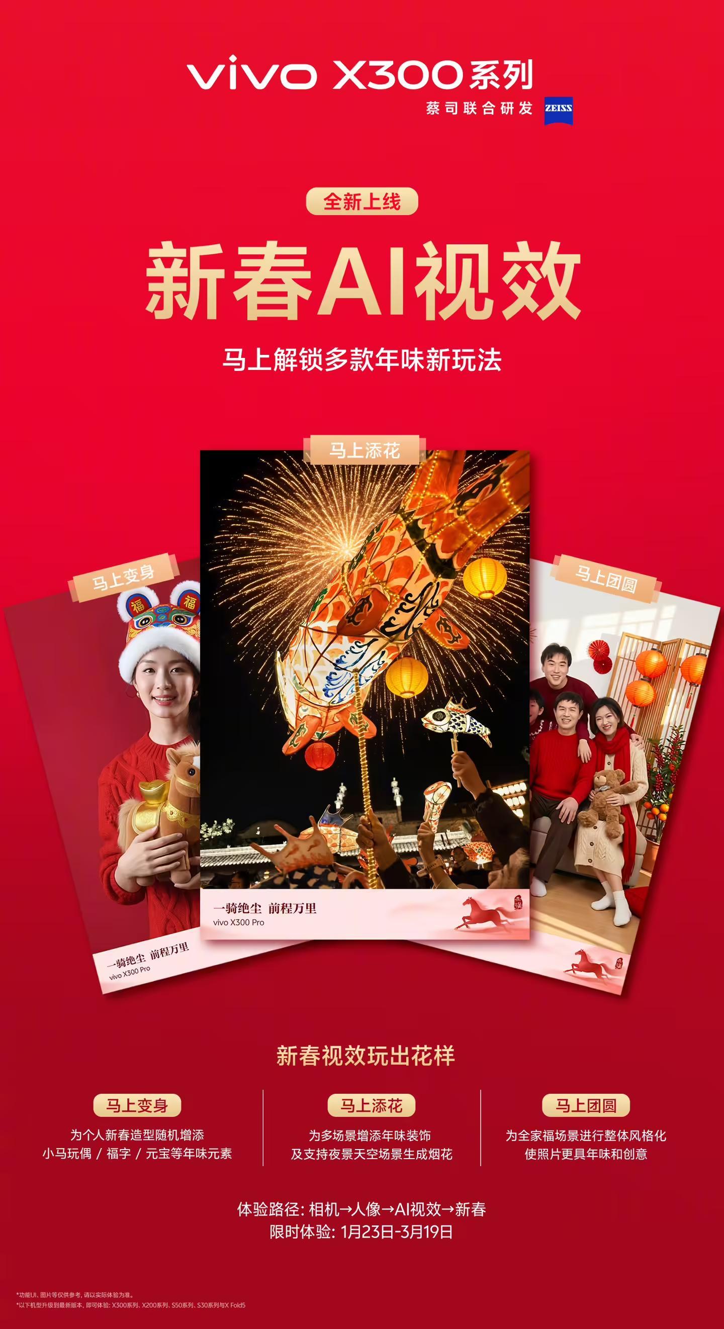 IT之家从 vivo 官方获悉,vivo X300 系列、X200 系列、S50 系列、S30 系列与 X Fold5 升级最新版本可体验全新春节限定水印和新春 AI 视效。