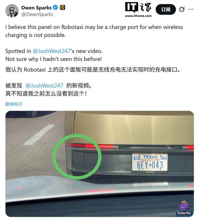 IT之家 1 月 21 日消息,汽车媒体 Not a Tesla App 昨日(1 月 20 日)发布博文,报道称特斯拉 Cybercab 原型车在美国多地现身,曝光了几项提升自动驾驶实用性的关键设计。