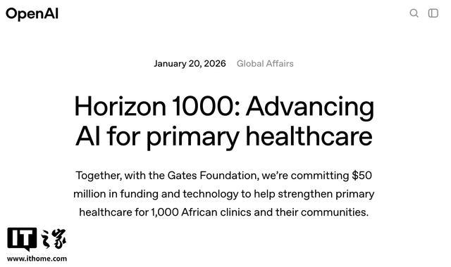 IT之家 1 月 21 日消息,北京时间今天下午,盖茨基金会与 OpenAI 宣布启动一项金额为 5000 万美元(IT之家注:现汇率约合 3.49 亿元人民币)的合作计划,旨在推动非洲国家利用 AI 技术改善医疗体系。