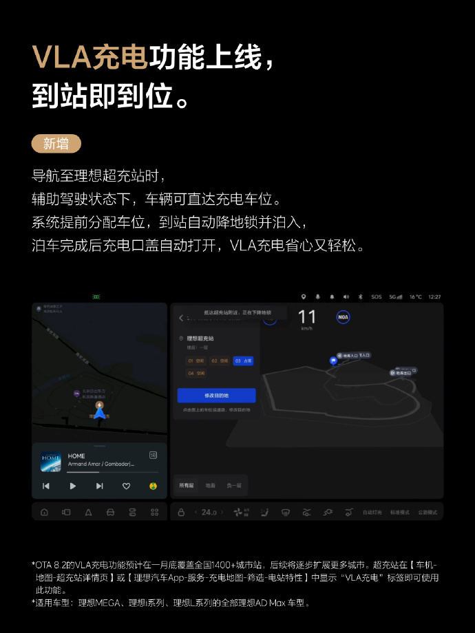 理想汽车OTA 8.2推送:新增VLA司机大模型行为强化学习能力 凤凰网科技讯 1月21日,理想汽车OTA 8.2已开启推送,新增VLA司机大模型行为强化学习能力、VLA充电功能、宠物模式、艺术相框、充电预热(增程车型等40项新功能。 据官方介绍,VLA司机大模型行为强化学习能力可深度学习毫秒级方向盘和电门动作数据,刹车不点头、转弯够自然,车辆行驶更拟人,带来更加丝滑、平顺、舒适的VLA行车体验。 此外,HUD窄路影像上线,人驾通过狭窄路段触发小窗视图时,HUD同步显示轮毂视角,画面组合随导航、路况切换,联动的全景影像小窗视图支持手动或任务大师设置触发。 Published by 风君子 独自遨游何稽首 揭天掀地慰生平 View all posts by 风君子