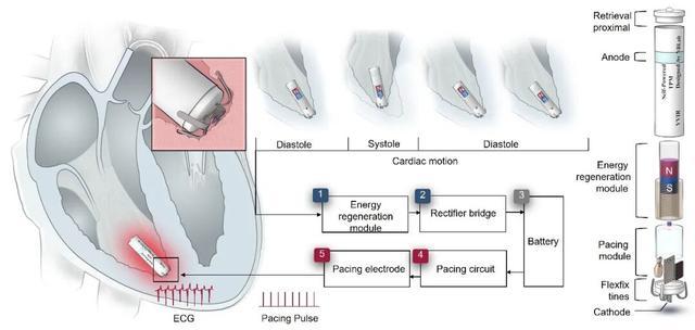 这款起搏器的核心创新是集成了高效能量再生模块:它能通过电磁感应技术,从心脏自身的跳动中捕获动能,并将其转化为电能。