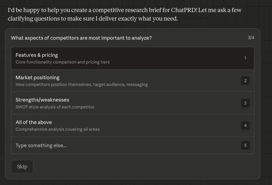 参与 Cowork 早期测试的网友,也分享了她的使用体验。她要求 Cowork 帮她完成一份竞品调研简报,Cowork 先是提出了一些问题,询问这份竞品调研报告,需要涵盖哪些方面的内容。