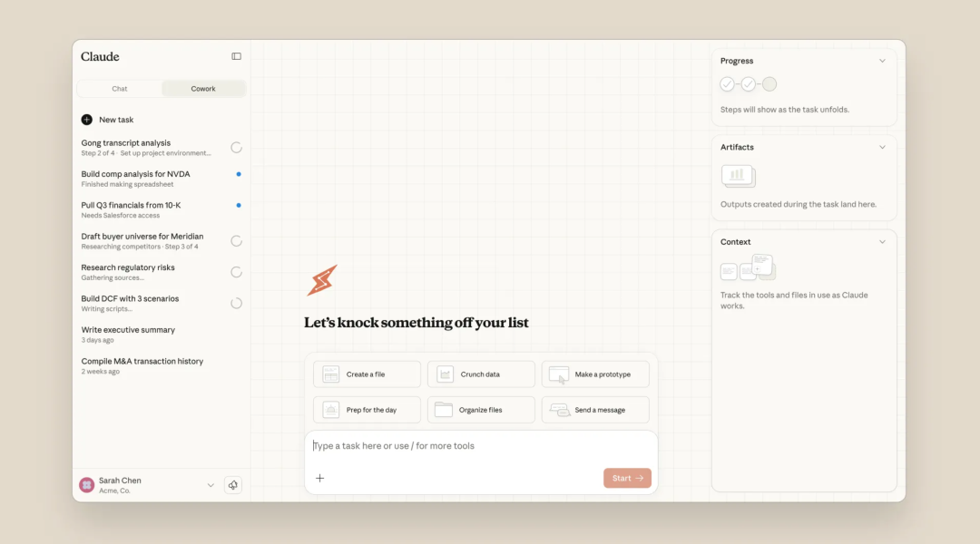 那 Cowork 到底是个什么东西?简单说,就是能直接「动手」整理我们电脑的 AI 助手。