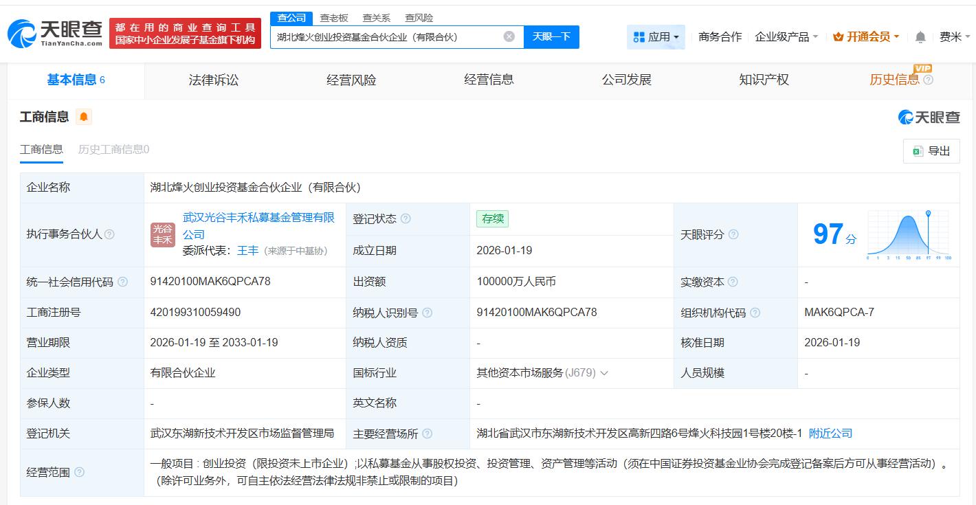 中国联通、烽火通信等在湖北成立创业投资基金 每经AI快讯,天眼查工商信息显示,近日,湖北烽火创业投资基金合伙企业(有限合伙)成立,执行事务合伙人为武汉光谷丰禾私募基金管理有限公司,出资额10亿元人民币,经营范围为创业投资,以私募基金从事股权投资、投资管理、资产管理等活动,由烽火通信(600498)、中国联通旗下联通战新私募股权投资基金(武汉)合伙企业(有限合伙)、湖北省投资引导基金有限公司等共同出资。 Published by 风君子 独自遨游何稽首 揭天掀地慰生平 View all posts by 风君子