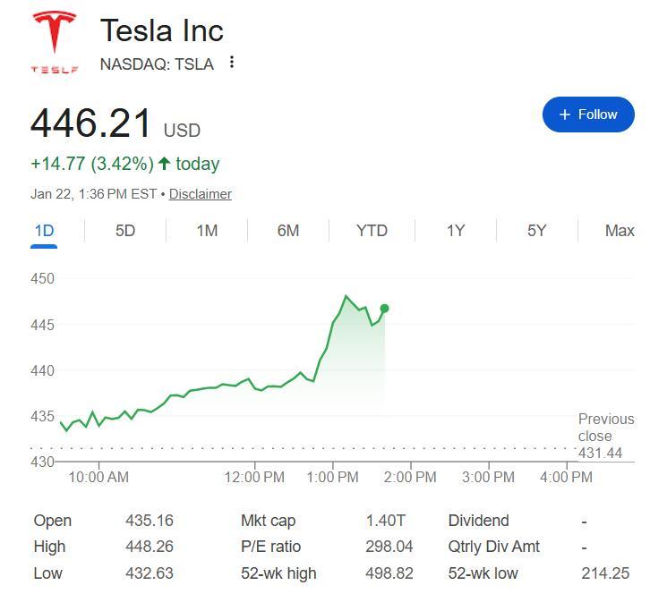 马斯克讲话期间,特斯拉股价持续走高,周四午盘,日内涨幅扩大到3%以上,有望连涨两日,抹平一周来跌幅。