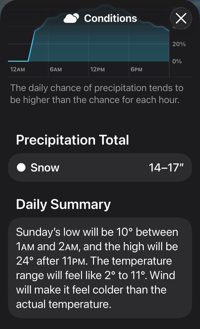 IT之家 1 月 23 日消息,本周末,美国大部分地区预计将迎来一场大规模冬季风暴。在风暴来临之前,许多用户严重依赖 iPhone 自带的“天气”App 查看天气预报。