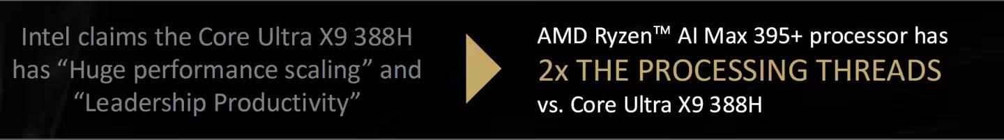 AMD 指出,英特尔在该细分市场的大部分芯片仅配备 4 个 Xe3 图形核心,仅为其完整规格的三分之一。相比之下,AMD 保留了 Radeon 890M/880M 核显,拥有 12 至 16 个计算单元(CU)。这意味着在相同的功耗区间内,AMD 有望在游戏和内容创作性能上继续保持领先。