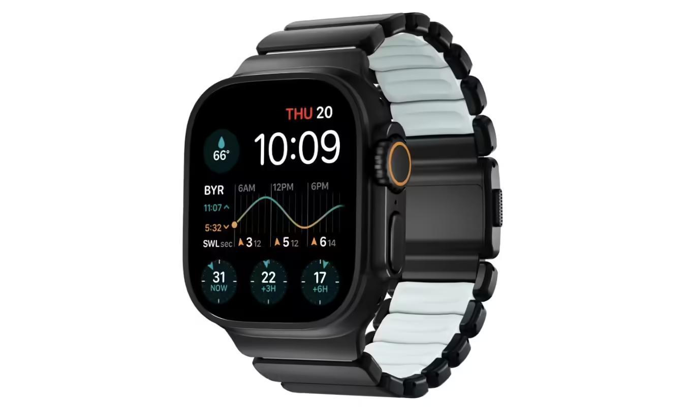 IT之家 1 月 23 日消息,制造商 Nomad 宣布为苹果 Apple Watch 推出一款“冰蓝色夜光钛金属表带”,该表带号称可以在暗光中呈现出微妙的荧光效果,定价 189 美元(IT之家注:现汇率约合 1319 元人民币)。