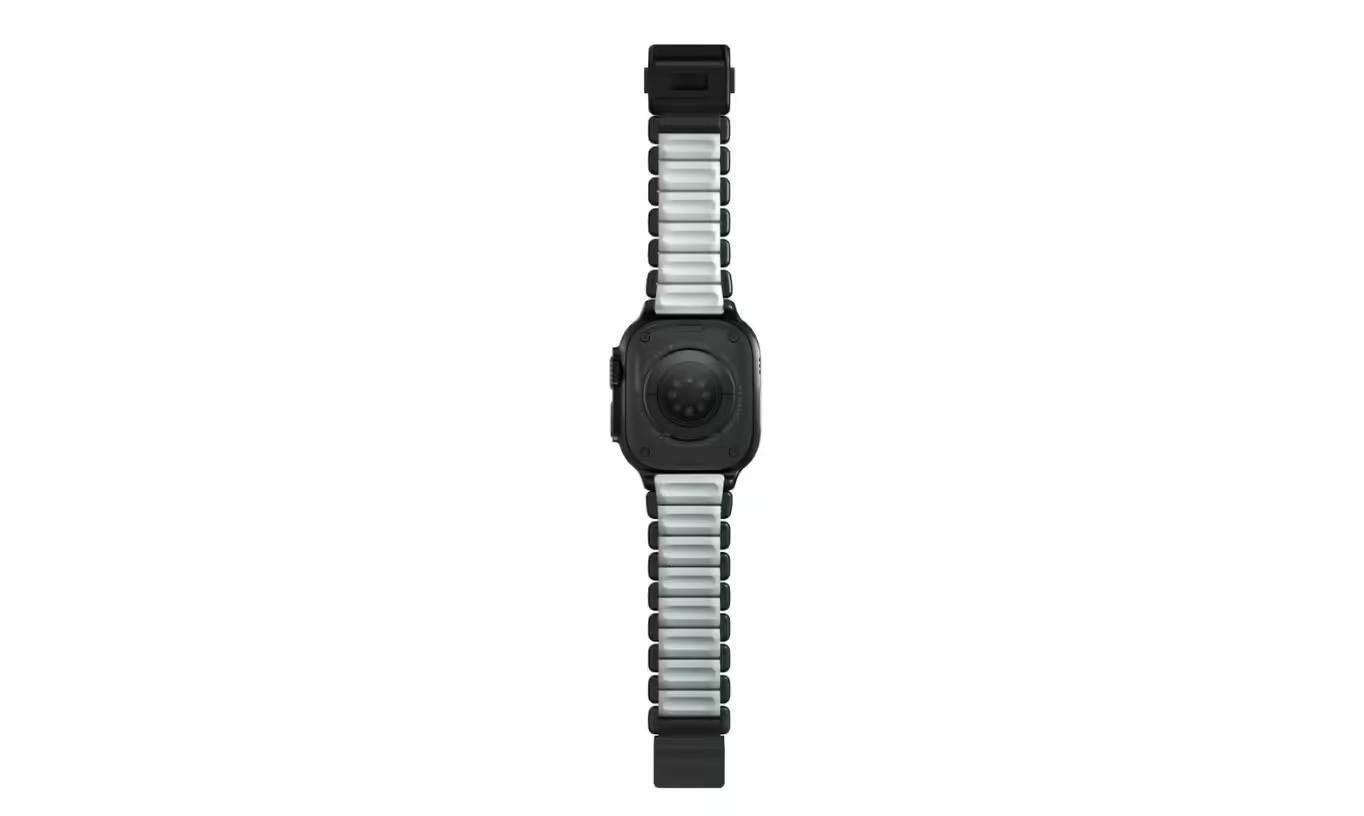 据官方介绍,这款表带外侧链节采用 4 级钛金属打造而成,保证了坚固与质感。内侧则使用了模压成型的氟橡胶(FKM)保持柔性,号称能够在佩戴时能更好地贴合手腕轮廓。