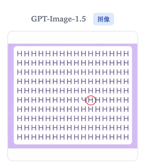 此外,在相似的字母中找不同的任务里,基于生成式的方法也表现出了一定的视觉思维能力。