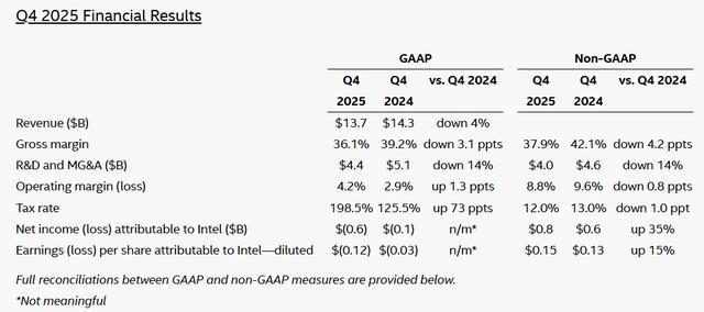 英特尔2025年第四季度财报(图源:英特尔官网)