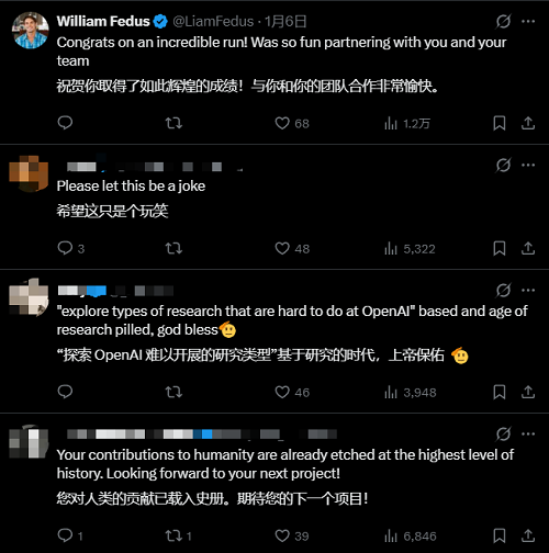 今年1月7日,Tworek在X平台上分享了自己离职的消息,评论区涌入了诸多OpenAI大佬,言语间满是不舍之情。