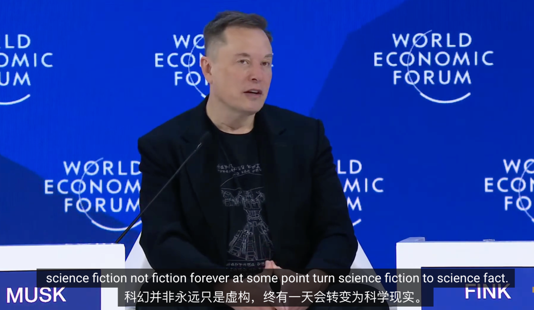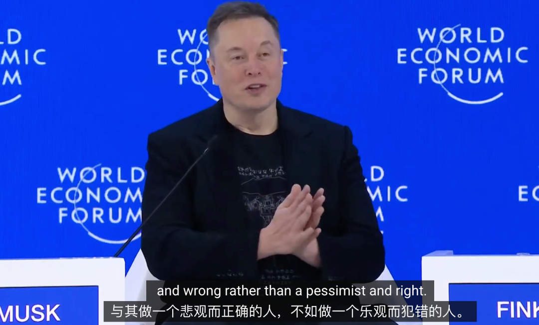 1月23日,马斯克和贝莱德CEO拉里·芬克同台对话,也是作为世界首富的他首次亮相达沃斯论坛。