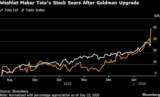 IT之家 1 月 24 日消息,彭博社 1 月 22 日报道,日本洁具制造商 TOTO 的股价迎来了五年来的最大涨幅,其股价一度上涨 11%。受 AI 数据中心扩张的影响,这家公司鲜为人知的芯片材料业务被寄予厚望。