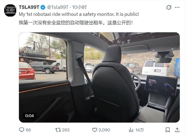 全网第一位体验到车内无人监督、完成特斯拉Robotaxi付费体验的,应该是一位特斯拉的前AI工程师。