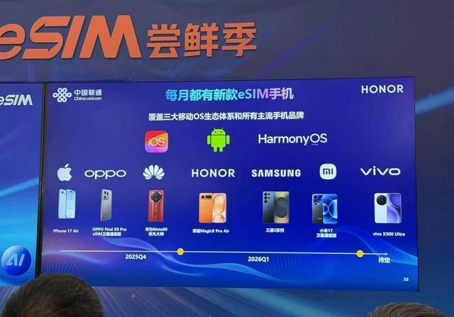 IT之家 1 月 24 日消息,今日有一张网传的中国联通 PPT 显示,三星 Galaxy S26 系列、小米 17 卫星通信版等 eSIM 机型将于今年第一季度发布。