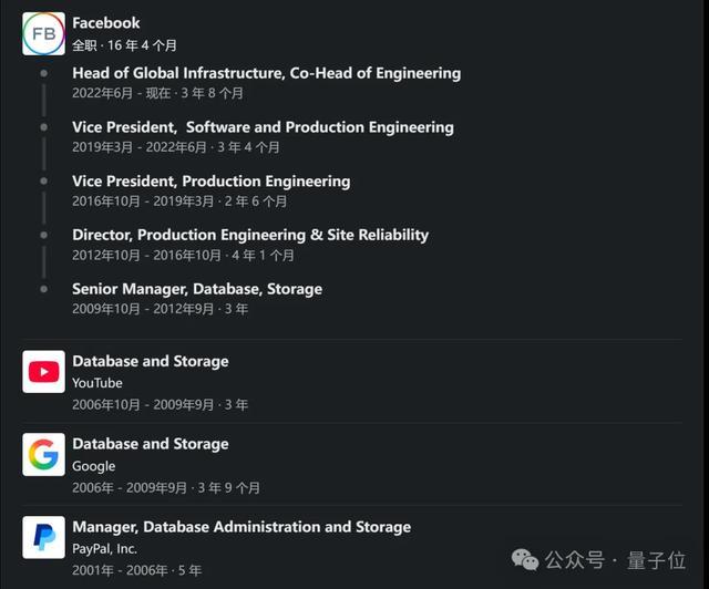 而在Meta的这十几年,他一路从数据库高级经理干到全球基础设施负责人,工程及管理经验都很丰富。