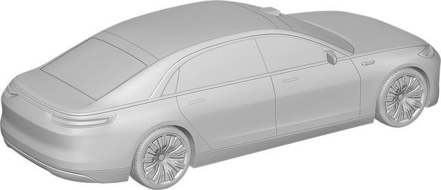华为终端有限公司还在 2023 年 2 月 8 日申请了另一份汽车外观专利,这款车预计仍是一款“行政旗舰”,不过拥有与上图不同的前脸设计,向内凹进的中网更强调动感风格,并换装了传统后视镜。不过,舒展的车身线条和大尺寸轮毂依旧吸睛。