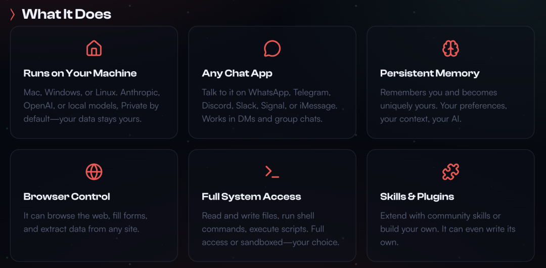 因为拥有权限,Clawdbot可以执行终端命令、即时编写并运行脚本、安装新技能,甚至设置MCP服务器来扩展外部集成。