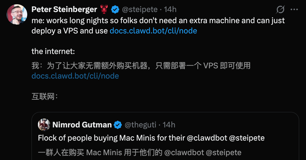 网友调侃,Clawdbot之父凭借一己之力,推动了Apple第一季度的销量。恐怕库克睡着,也要笑醒了。