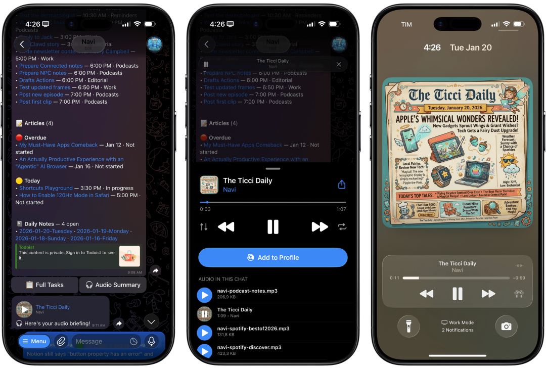 晨间简报: 一觉醒来,手机里已经躺着一份总结:重要邮件、当日日程、待办事项。下床前就帮你理清思路。