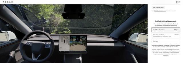 而对于此前已付费 6000 美元(现汇率约合 41878 元人民币)购买 EAP 增强辅助驾驶(支持变道 / 辅助泊车)的车主来说,他们可使用 49 美元(现汇率约合 342 元人民币)优惠价半价订阅 FSD,或在 3 月 31 日前限时支付 2000 美元(现汇率约合 13959 元人民币)买断 FSD。