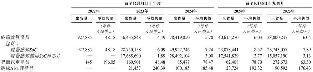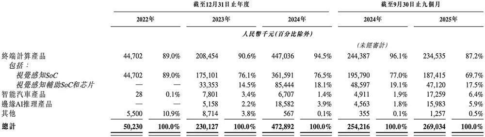 2022年至2025年9月底,爱芯元智有超8成的收入来自终端计算产品(包括视觉感知SoC、视觉感知辅助SoC和芯片)。