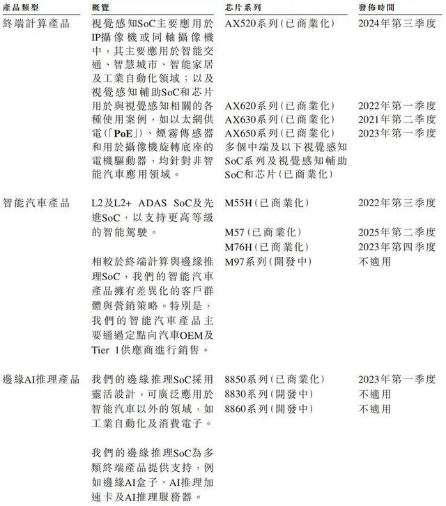 截至2025年9月30日,爱芯元智已独立开发五代SoC并实现其商业化,涵盖数十种类型,已在视觉终端计算、智能汽车和边缘AI推理应用中实现大规模生产;累计交付的SoC超过1.65亿颗。