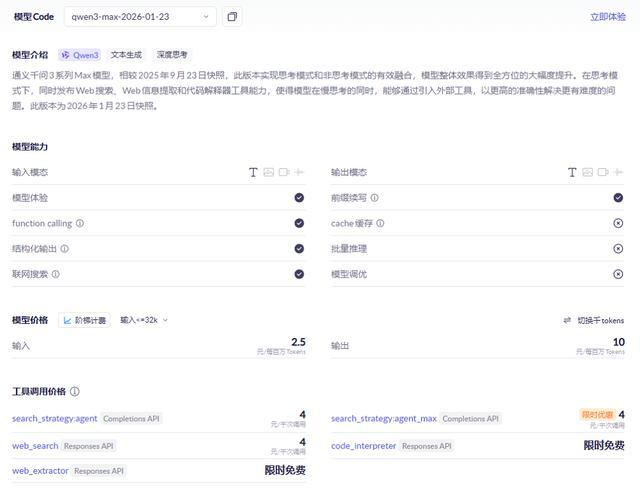 Qwen3-Max-Thinking不是开源模型。目前,它已经上线Qwen Chat,在这里可以体验到模型的自适应工具调用功能。同时,Qwen3-Max-Thinking的API也开放了,价格为2.5元/百万输入tokens、10元/百万输出tokens,还是比较有性价比的。